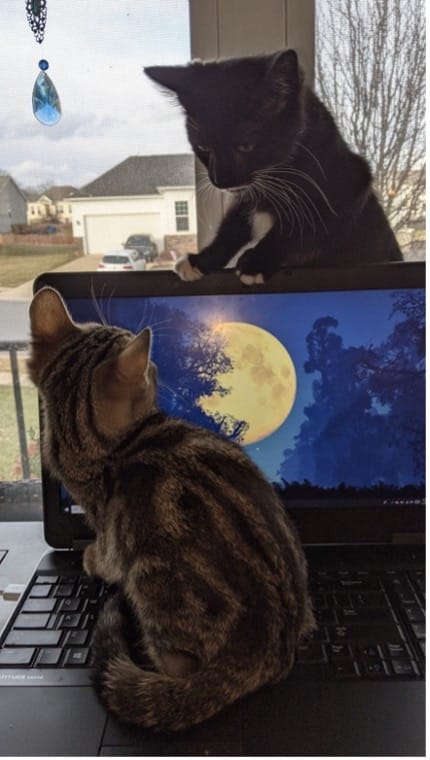 We adopted a 5-week-old tuxedo kitten during the pandemic. He was so lonely during the day even though I worked from home and the boys were doing remote school. We just couldn’t play with him all the time. So, when Shadow turned 3 months old, we adopted a second kitten, Ghost, who was also 3 months old.